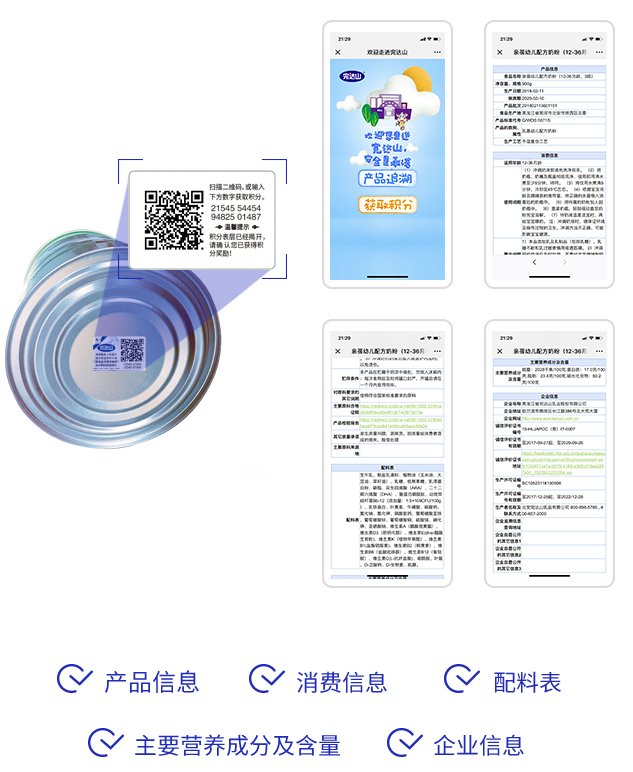 在市場上拿到任意一款完達(dá)山嬰幼兒配方奶粉產(chǎn)品通過APP、微信以及打開完達(dá)山官網(wǎng)查詢?nèi)肟冢?br>